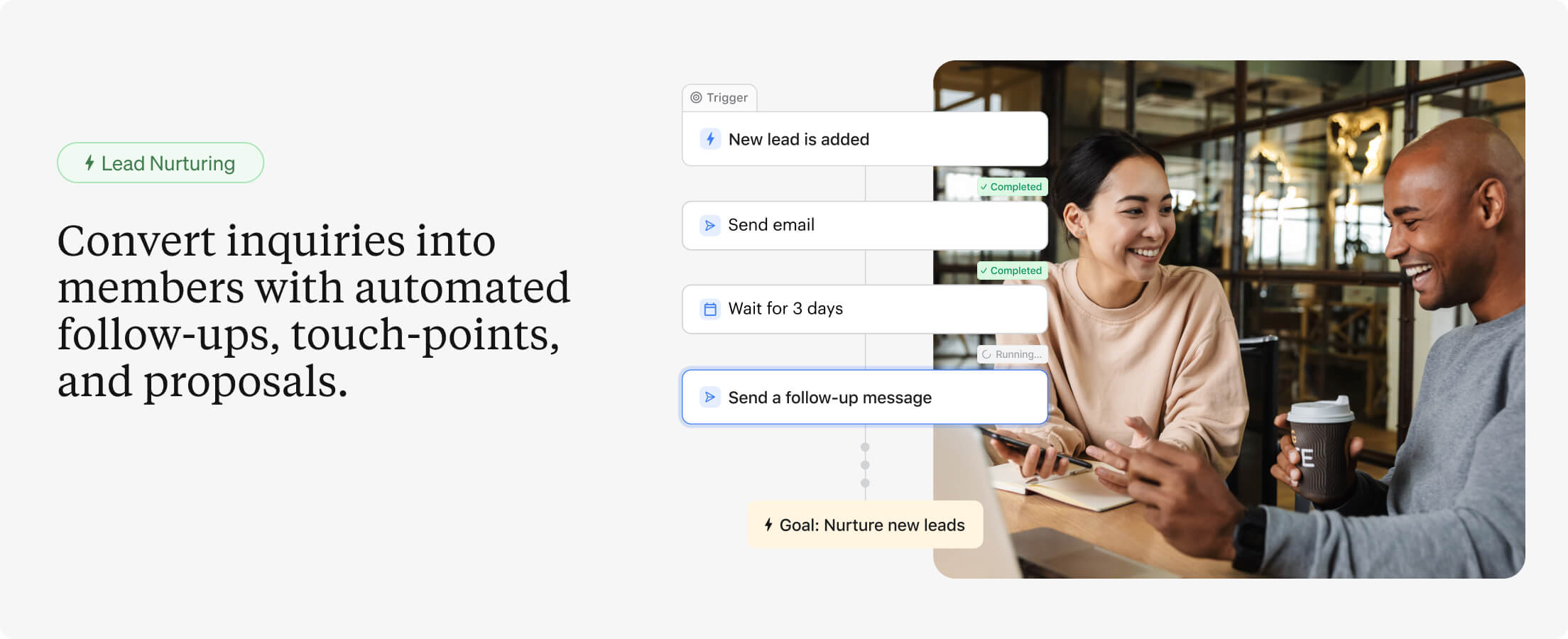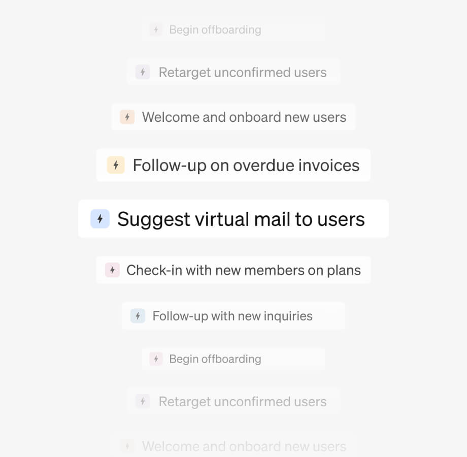 Optix is the only coworking software offering end-to-end automation. With this, Optix can automate every aspect of your user journey including lead nurturing and follow-ups, onboarding, booking, invoicing, upselling, and more, freeing your team for higher-value interactions.