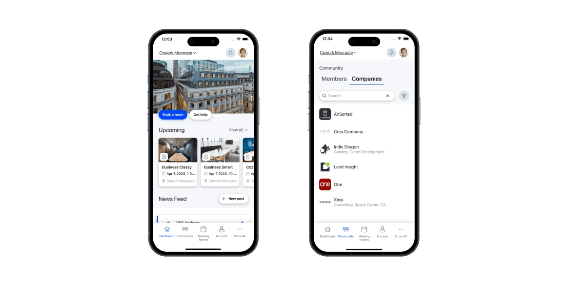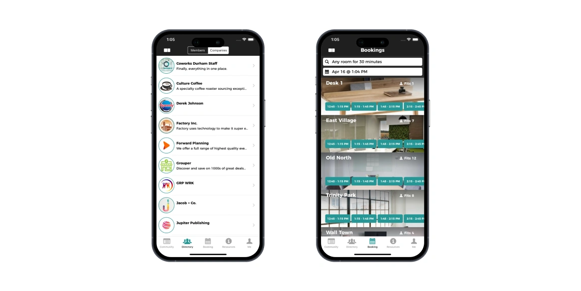 A coworking app is a mobile application for iOS and Android used by members of a coworking space to book rooms, make payments, communicate with other members, and more.