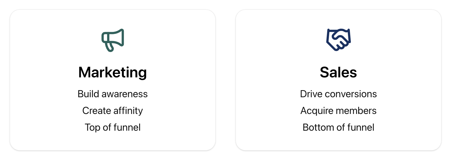 Marketing a coworking space is about building awareness and affinity for your brand, while sales is about turning interest into paying members. Typically the role of marketing is to bring customers in towards the top of the funnel while sales can focus on converting them at the bottom of the funnel.