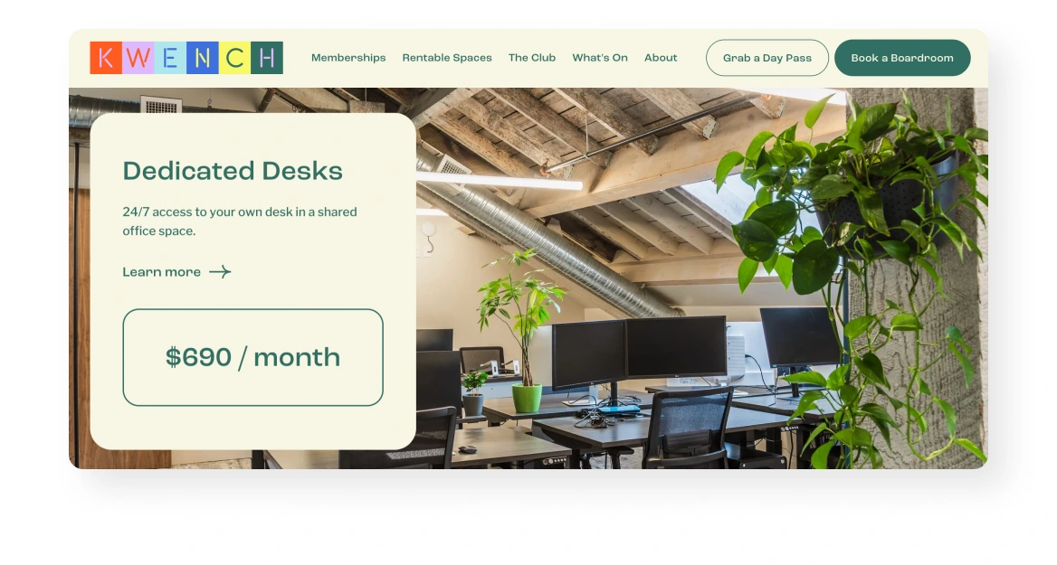 For that reason, we recommend coworking spaces show pricing on their website. Take a look at some of the best websites of coworking spaces and you’ll notice pricing is commonly found across all of them.