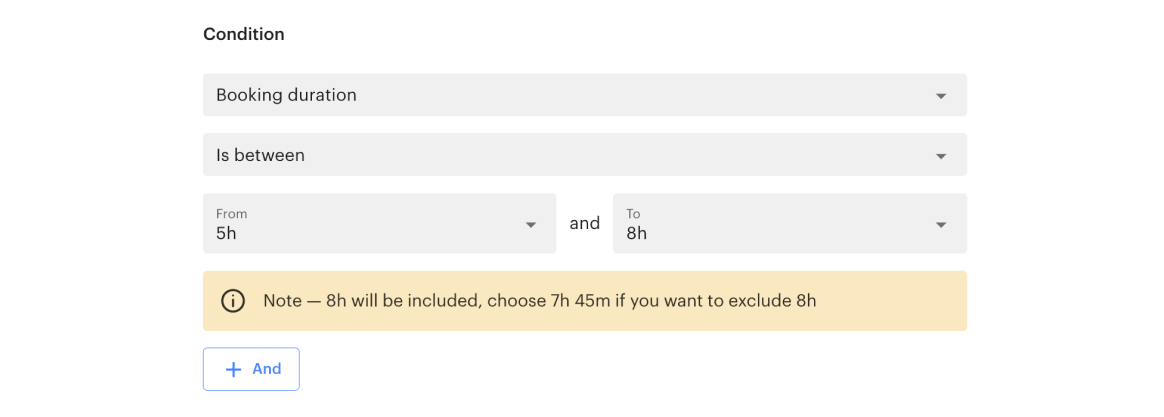 If you’re looking to encourage longer bookings for specific resources, consider offering a discounted rate for bookings that exceed a set duration. This is especially useful for resources like meeting rooms that you’d prefer to be booked in larger time blocks (such as half-day sessions) rather than short, hourly bookings.