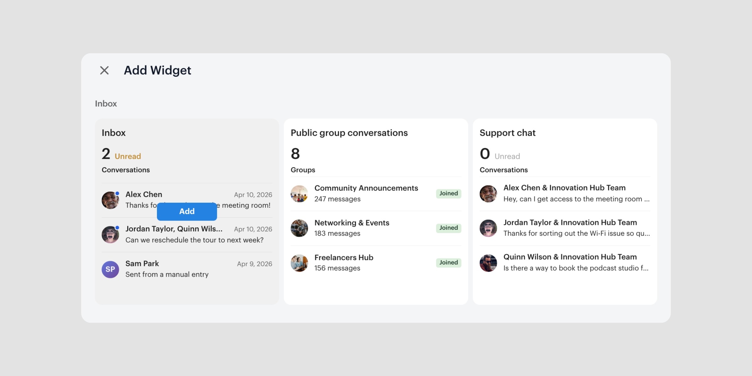 Widgets sit inside collapsible sections, so you can group your view around what matters to you. Want revenue at the top and automations below? Done. A focused operational view for your community manager? That works too. Each admin saves their own layout independently, so different team members can configure the Dashboard to suit their role without affecting anyone else.