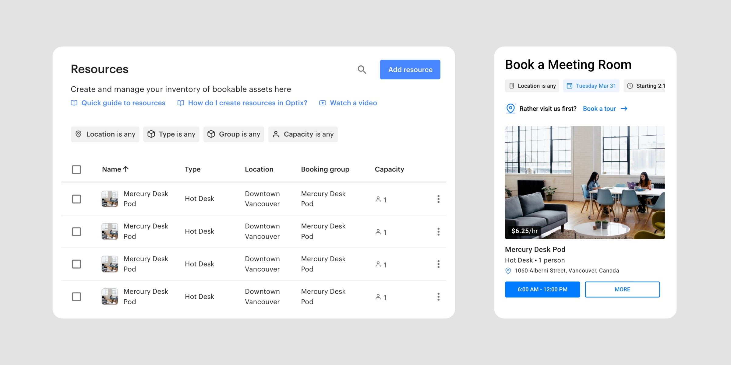Now, the widget shows one best-available option per resource type. If you’ve set up resource groups, members will see one option per group instead.