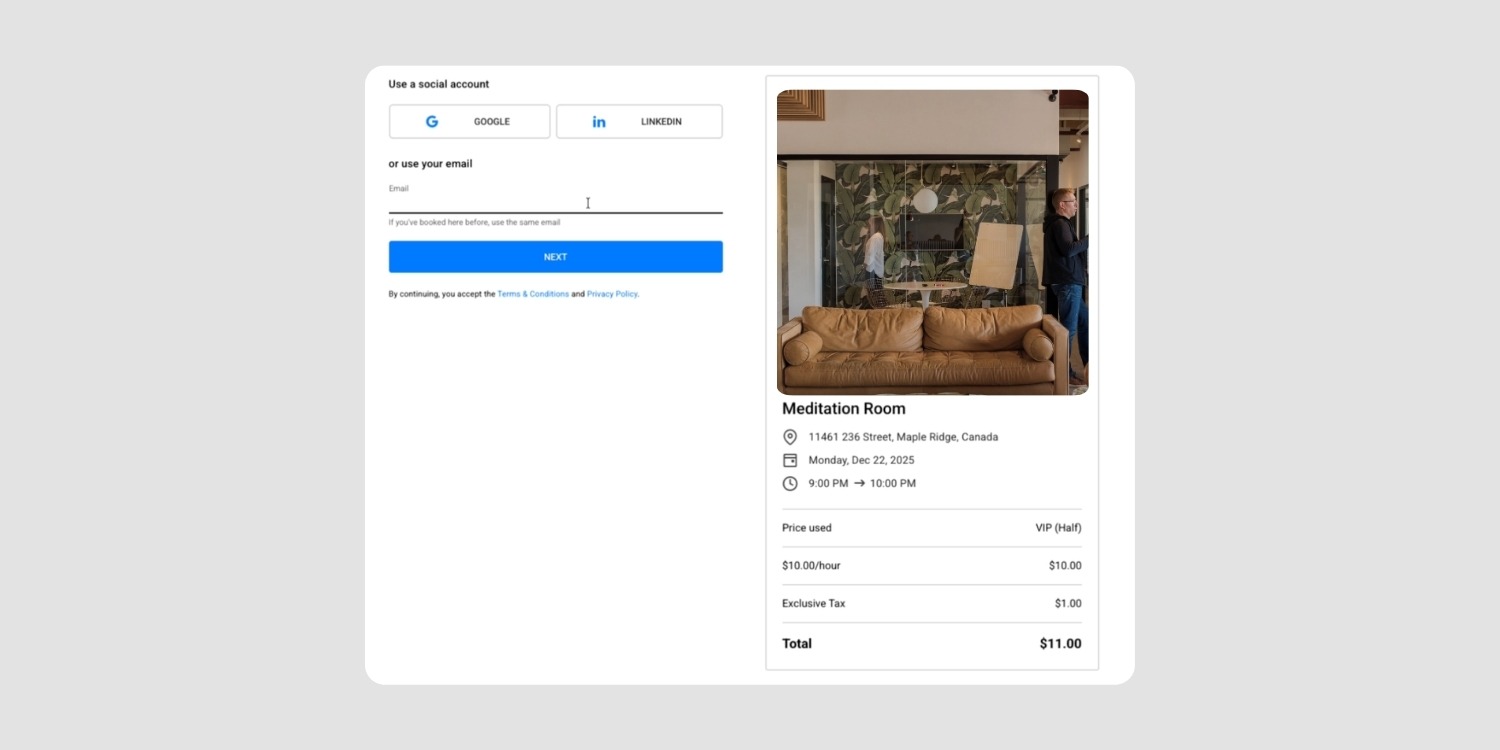 - Drop-in users see booking cost immediately after selecting a resource and time